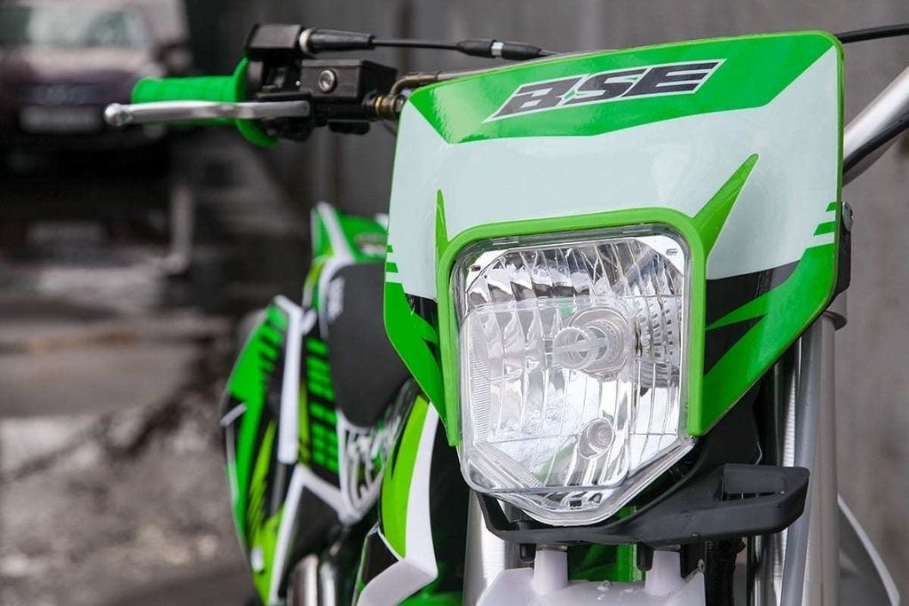 BSE PH150 – король питбайков в линейке BSE. PH150 на колесах 17/14 оснащен самым мощным двигателем среди питбайков BSE и самой богатой комплектацией. Основа PH150 - рама из хромомолибденовой стали повышенной жесткости с литыми усилителями - фирменный знак качества завода BOSUER! Cиловая установка питбайка - надежный и тяговитый 4-тактным двигателем YX объёмом 150 см3 с воздушным охлаждением. Максимальная мощность – внушительные 15 лс. Питает мотор карбюратор MIKUNI VM22. Питбайк оснащен 4-ступенчатой механической трансмиссией. Запуск мотора осуществляется при помощи электростартера или кик-стартера. Подвески с большими ходами: передняя - телескопическая вилка перевёрнуто типа, задняя- моноамортизатор. LED фара головного света, "злая" резина Innova, мощная тормозная система HSK Racing, японские колесные подшипники NTN, усиленная цепь 428 Gold, защита мотора, руль ProTaper - питбайк полностью укомплектован всем необходимым для покатушек и гонок. PH150 – профессиональный выбор самого продвинутого "питбайкера".