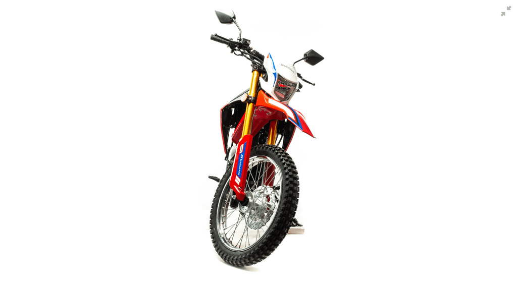 Дизайн данного мотоцикла навеян легендарным HONDA CRF250 L: в расцветке преобладает насыщенный красный цвет с синими-белыми элементами, дополненными эффектными карбоновыми вставками.