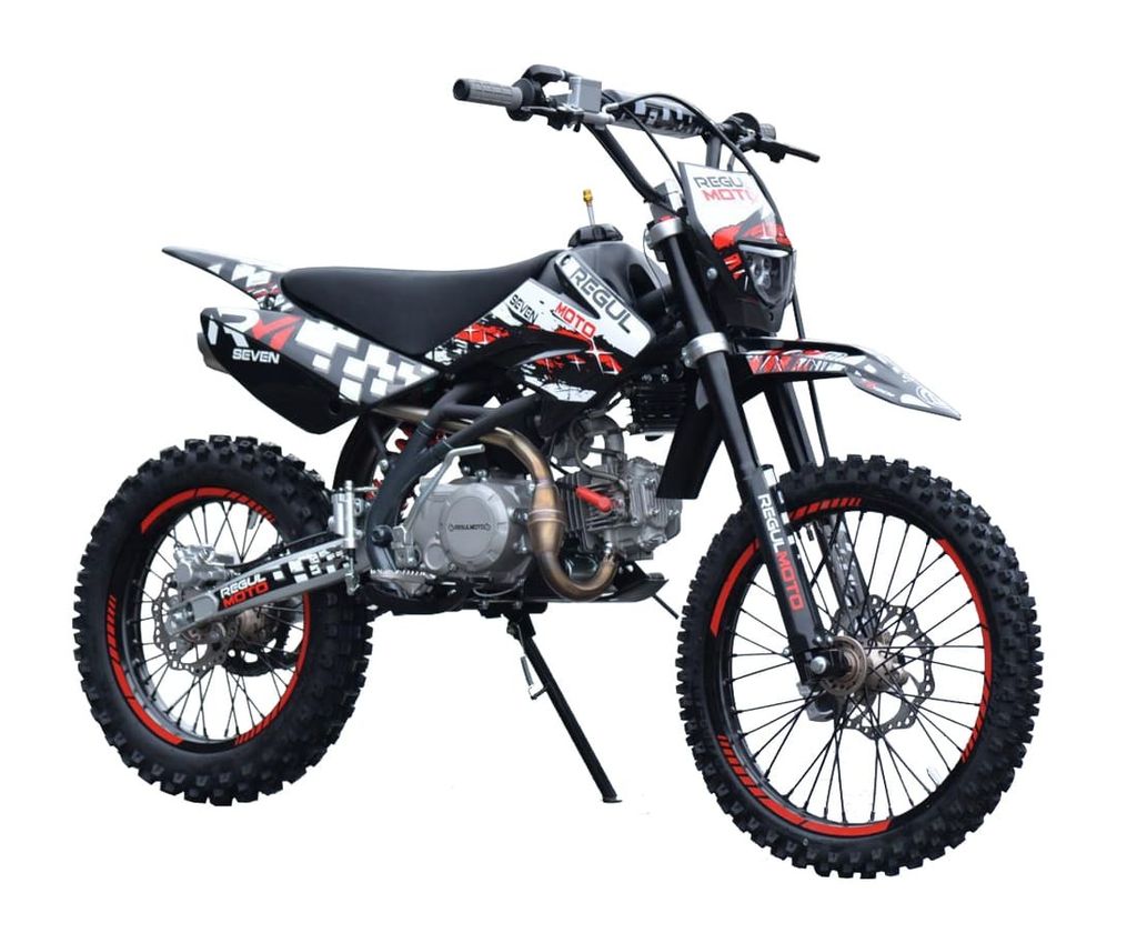 Regulmoto SEVEN MEDALIST 150E – оптимальный выбор для райдера, который позволит своему владельцу совершенствовать навыки управления мототехникой на треке мотостадиона, а также получать максимальное удовольствие от офф-роад рейдов. В раме Regulmoto SEVEN MEDALIST 150E установлен 140-кубовый 4-тактный YX(X150) – этот двигатель отлично себя зарекомендовал в качестве надежного и простого силового агрегата. Подготовкой топливной смеси занимается карбюратор Nibbi. Запуск мотора возможен как при помощи тумблера электростартера, так и привычной ножкой кика.