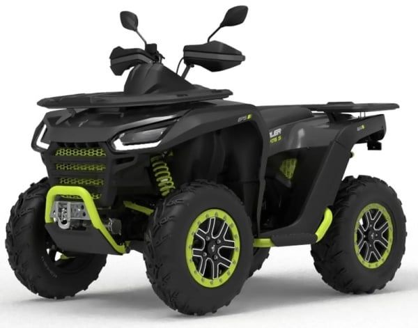 Грузовая платформа выдерживает до 100 кг, а буксировочный крюк рассчитан на нагрузки до 600 кг, превращая квадроцикл в многофункционального помощника. Двухрычажные подвески спереди и сзади эффективно гасят вибрации на неровностях, а 12-дюймовые колеса с глубоким протектором обеспечивают маневренность в сложных условиях. Гидравлические дисковые тормоза с защитой от перегрева гарантируют безопасность на крутых спусках.