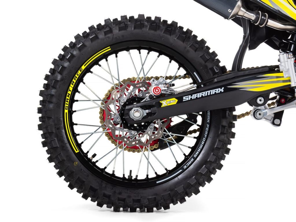 Двигатель Лёгкий и мощный двигатель МТ250, с быстрым впрыском топлива, будто был создан для этого байка. 249 куб. см и 37 л. с. — оптимальная мощность для таких габаритов. Этот 2-тактный силовой аппарат сделан, чтобы показать оптимальное сочетание полезной мощности и низкого веса. Трансмиссия 6-ступенчатая коробка передач с шестернями из прочного кованного металла практически не изнашивается даже после нескольких сезонов. Лапка переключения — алюминиевая и складная, не пострадает даже в случае падения на бок. Карбюратор Надёжный карбюратор не подведёт в самых сложных условиях. Топливная смесь высшего качества наполнит цилиндры за долю секунды и обеспечит быстрый старт даже в лютый мороз, если вдруг захотите покататься зимой. Подвеска Подвеску Sharmax Motors Diablo 280 можно настроить под любой тип поверхности без потери качества. Передняя вилка фирмы TNT имеет регулировки сжатия и отбоя, задняя (TNT) — справится с любыми преградами и мягко отработает мелкие неровности. Охлаждение Sharmax Motors Diablo 280 оборудован жидкостным охлаждением с водяной рубашкой и датчиками температур. Они включают дополнительные вентиляторы при достижении критических показателей. Помпа повышенной производительности не даст вам “закипеть” даже в +40°C. Электростартер Хотите быть на шаг впереди? С быстрым и надёжным электростартером вам нужно лишь нажать кнопку, чтобы начать гонку. Проверенный привод и мощный двигатель стартера дадут несколько драгоценных секунд преимущества и сэкономят время в самый важный момент. Помимо электрического, Sharmax Motors Diablo 280 оснащён и кикстартером, но он вам не понадобится. Рама Идеальная геометрия. Симметричная дуплексная рама из высоколегированной стали, позаимствованная у профессиональных гоночных байков, обеспечит оптимальную жёсткость и отзывчивость. Благодаря такой форме райдер и байк становятся одним целым, с лёгкостью преодолевая любые препятствия трека. Руль Материал — высокопрочный алюминий, варианты положений руля — 3. Грипсы мягкие и не скользят, защита для рук выдержит сотни падений. Вам останется лишь уверенно держаться за руль и устремиться вперёд со скоростью ветра. Сиденье Sharmax Motors Diablo 280 оборудован удобным сиденьем с нескользящим покрытием. В таком седле вы забудете о неудобствах и почувствуете себя словно в массажном кресле. Резина Шины Kenda буквально вгрызаются в грунт, на оставляя шансов соперникам на виражах. Агрессивный рисунок шашки, мощный состав в центре покрышки и мягкая плечевая зона обеспечивают идеальный баланс жёсткости и управляемости.