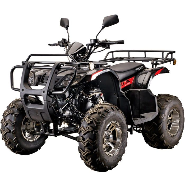 Малокубатурный китайский квадроцикл рассчитан на 1 человека, но легко может увезти двоих. Удлиненное, широкое сиденье позволит удобно расположиться водителю и пассажиру, а подножки сделаны с расчетом на пассажира. Колеса 10 радиуса делают квадроцикл более проходимым и высоким (дорожный просвет - 40 см). Максимальная нагрузка - до 180 кг. На квадроцикле 150 установлен передний и задний багажники, которые выдерживают нагрузку до 50кг. Расход топлива - 5 литров на 100 км.