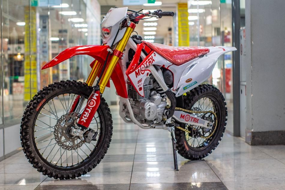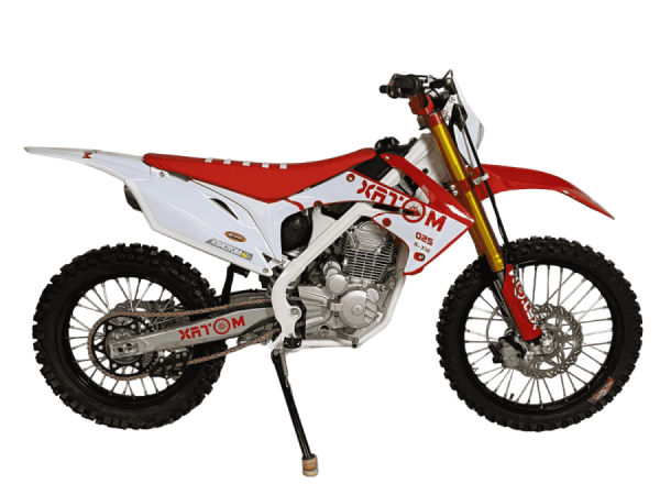 Эндуро с электростартером и четырехтактным двигателем 250 кубов. Максимальная нагрузка — 150 кг, максимальная скорость — 105 км/час