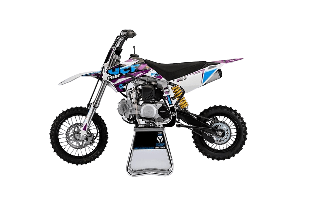 В фирменной раме YCF Pilot F150 установлен 4-тактный двигатель рабочим объемом 146см3, работающий в паре с карбюратором NIBBI. Для переключения передач используется 4-ступенчатая механическая трансмиссия (рычаг сцепления выжимается очень легко). Подвеска представлена традиционной для питбайков YCF телескопической вилкой-перевертышем спереди и мощным моноамортизатором сзади. Параметры работы заднего амортизатора можно настраивать в соответствии с условиями эксплуатации.