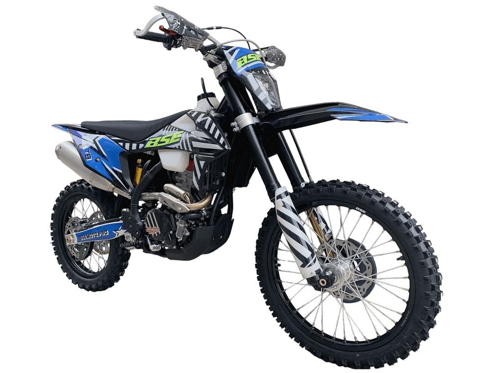 T8 оборудован фирменной заводской спортивной подвеской BSE Mojo Racing. Подвеска с большими ходами имеет полный диапазон регулировок и помогает отрабатывать даже самые жесткие приземления, с лёгкостью "глотая" все неровности. Подвеску легко настроить под любой рельеф, любую трассу и стиль езды. Вы ощутите результат, когда будете сокращать секунды круг за кругом! Особое внимание было направлено на снижение веса всей подвески. Разработка подвески BSE Mojo Racing производилась опытными инженерами-подвесочниками завода, а настройка - под чутким контролем заводской спортивной китайской командой BOSUER. Спереди установлена полностью регулируемая вилка «перевертыш» BSE Mojo Racing c перьями диаметром 53/58.5 мм, 930 мм. Сзади установлен полностью настраиваемый моноамортизатор BSE Mojo Racing 480 мм.