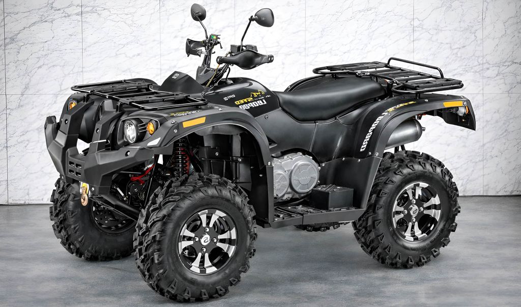 Квадроцикл оборудован системой дистанционного управления, дисковыми гидравлическими тормозами, зеркалами заднего вида и световым оборудованием. В стандартной комплектации предусмотрены расширители колесных арок, защита днища и металлический бампер с декоративной накладкой, а трехступенчатая коробка передач позволяет выбирать режим езды в зависимости от условий и опыта водителя.