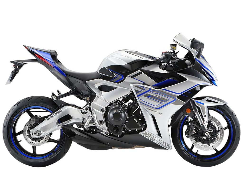Мотоцикл ZONTES ZT703-RR – спортбайк с мощным двигателем и стремительным дизайном. Покоряй новые рекорды! 3-цилиндровый 4-тактный двигатель ZT703 с объёмом 699 см³ способен обеспечить 102 л.с. и разогнать мотоцикл до 250 км/ч. Максимальная мощность достигается при 11 200 об/мин, а максимальный крутящий момент в 74,5 Нм – при 8500 об/мин. Имеет степень сжатия 13,0:1. Двигатель обеспечивает непревзойдённую динамику и выражает свой характер через мощный звук. Запуск двигателя осуществляется с помощью бесключевого доступа. Двигатель имеет 2 режима, переключаемые одним нажатием. Для охлаждения двигателя используется жидкостная система, а за подачу топлива отвечает инжектор MOTION. Трансмиссия имеет 6 ступеней и схему 1-N-2-3-4-5-6. Объём топливного бака 16 литров. Замок топливного бака с электронным управлением. Продуманная спортивная конструкция обеспечивает большую прижимную силу и устойчивость при высоких скоростях. Рама из алюминиевого сплава обладает высокой устойчивостью на разрыв 20 000 Н (2 тонны), при этом имеет вес всего 12 кг. Подрамник весом 2,5 кг имеет устойчивость на разрыв 15 000 H (1,5 тонны). Глушитель установлен в нижней части для смещения центра тяжести. ZONTES ZT703-RR готов к высоким нагрузкам. На мотоцикл установлена регулируемая подвеска MARZOCCHI. Передний амортизатор представлен телескопической вилкой перевёрнутого типа. Сзади установлена многорычажная подвеска, улучшающая устойчивость и эффективно амортизирующая неровности дороги. Колёса представлены алюминиевыми дисками диаметром 17 дюймов с полой конструкцией для снижения неподрессоренной массы. Сзади установлена покрышка шириной 180 мм для повышения площади сцепления и улучшения устойчивости. Противобуксовочная система TCS повышает устойчивость при манёврах. Для торможения установлена дисковая гидравлическая система от BREMBO. Спереди используется двойной диск 300 мм с 4-поршневыми суппортами, сзади диск 260 мм с однопоршневым суппортом. Дополнительно мотоцикл оснащён 2-канальной ABS-системой. На мотоцикл установлена LED-оптика. Приборная панель представлена TFT-дисплеем диагональю 6,75 дюйма. Мотоцикл оснащён системами GPS и Bluetooth. Имеется 2 USB-порта: Type-A и Type-C. Имеется подогрев руля для поездок при холодной погоде.