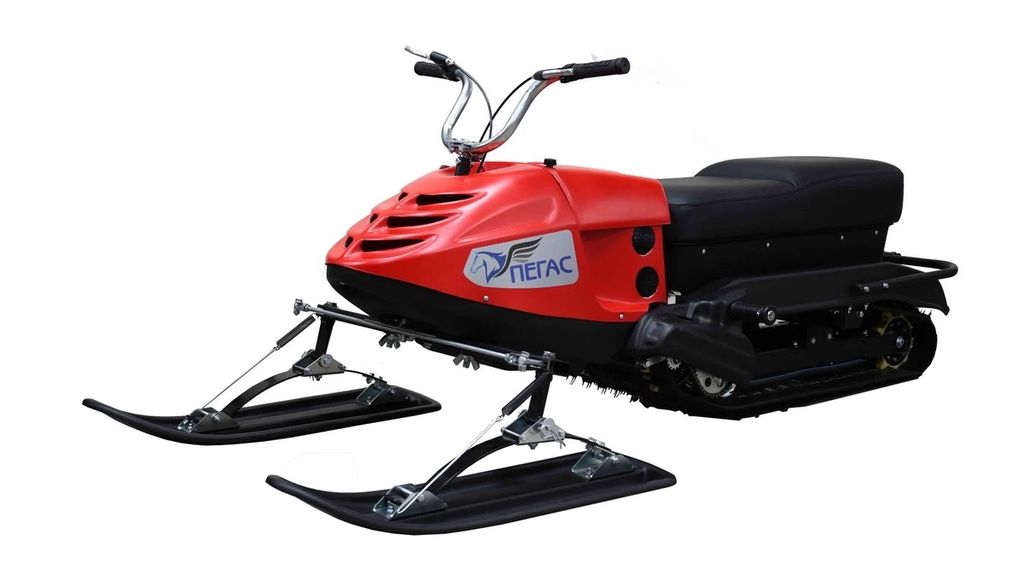 Снегоход трансформируемый ПЕГАС, предназначенный для эксплуатации в условиях зимнего бездорожья, а также по замёрзшим рекам и озёрам. Компактный снегоход для перевозки одного или двух взрослых людей. Отличительной особенностью является компактность в транспортировочном положении, что позволяет перевозить снегоход в легковом автомобиле. Миниснегоход ПЕГАС прост в обращении, экономичный, надёжный, не требует специальных мест хранения и перевозки. Нет необходимости в регистрации, не нужны водительские права.