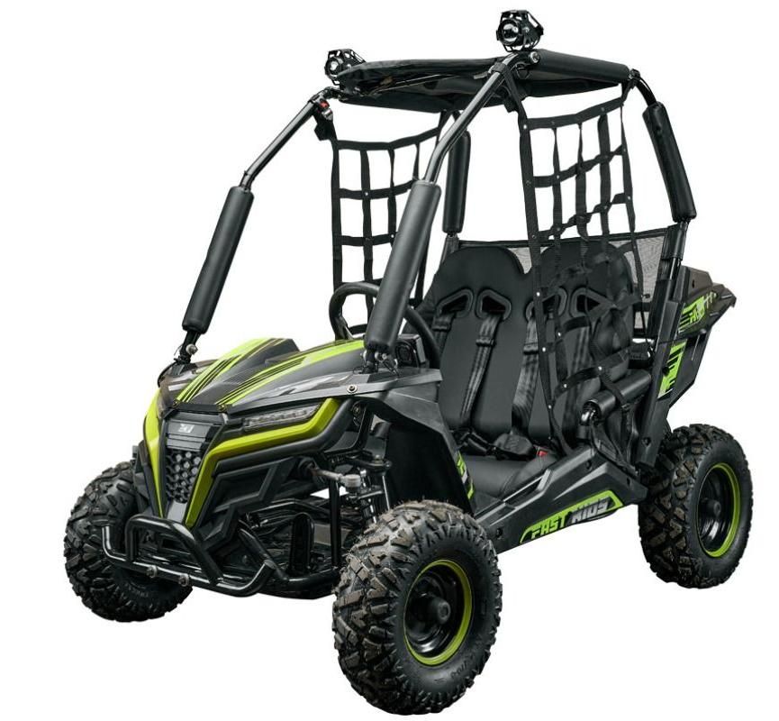 - Комфорт и безопасность: регулируемое сиденье, эргономичный руль, 4-точечные ремни безопасности и усиленный каркас гарантируют стабильность и безопасность во время езды.