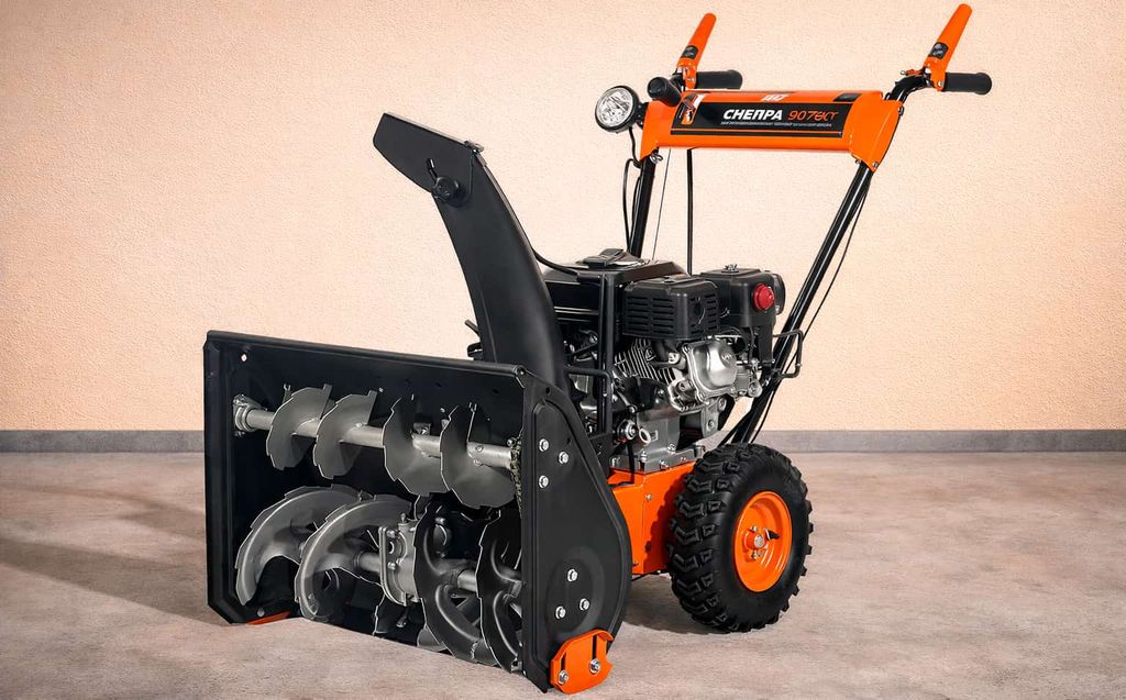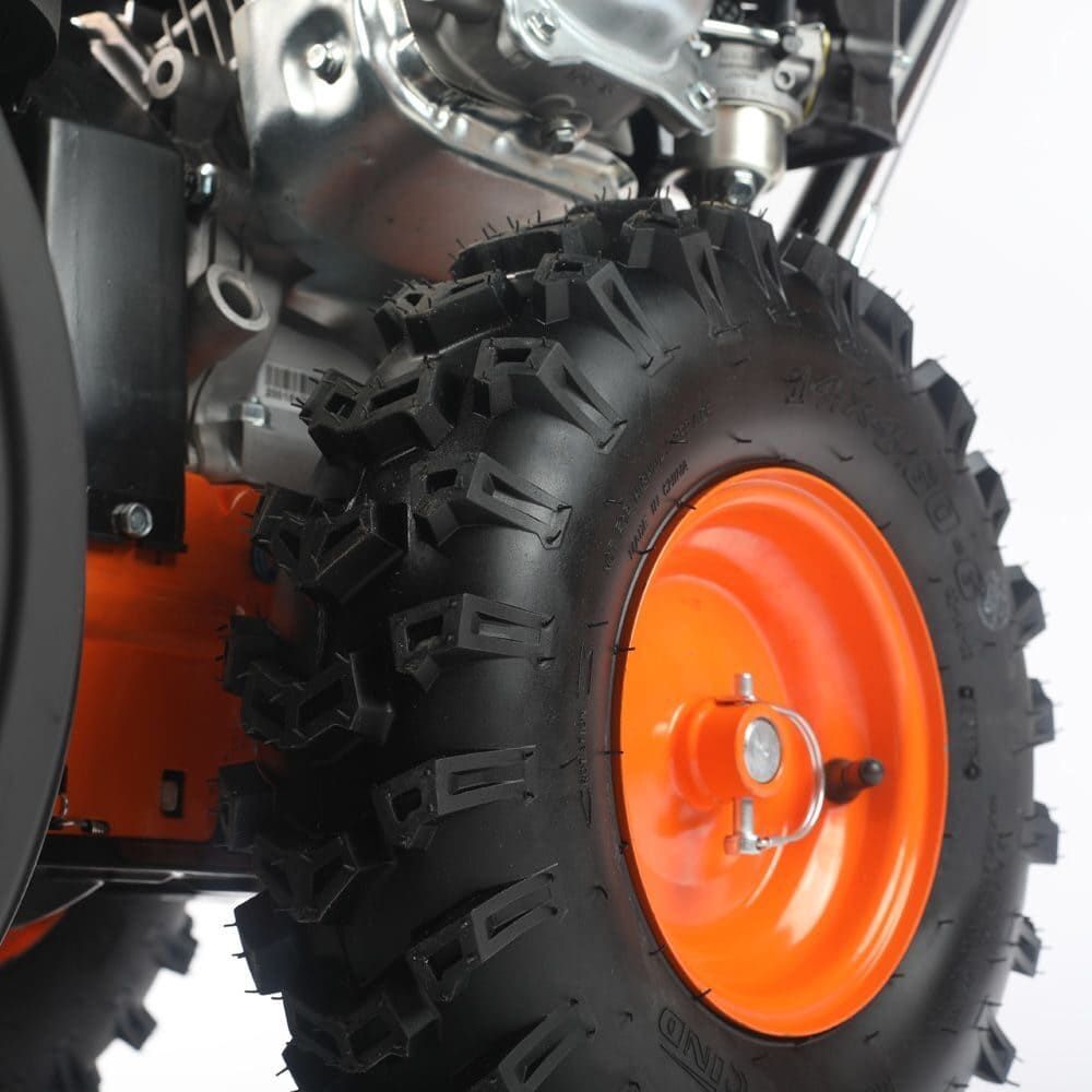 • Металлический желоб для выброса снега - не деформируется при отрицательной температуре. Специальный рисунок протектора колес - не пробуксовывает на льду и уверенно идет по любому снегу.