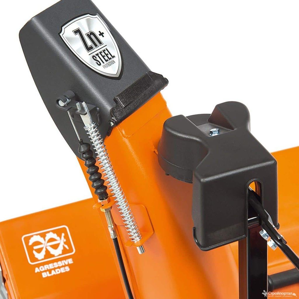 • Стальной шнек. Снегоуборочная машина оснащена специальным шнеком с зубчиками, который позволяет справиться даже с залежавшимся снегом на большой и маленькой территории. Обладает многоступенчатой системой очистки.