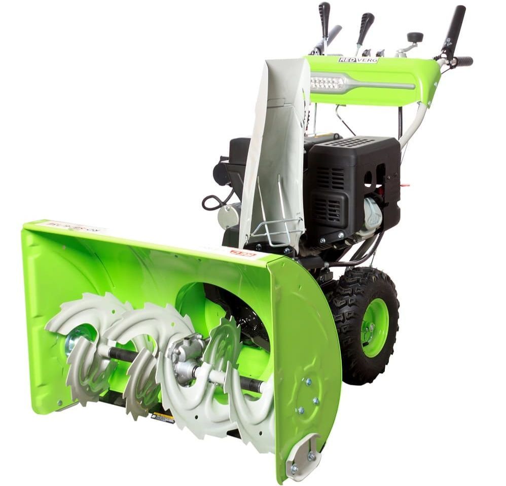 Самоходный снегоуборщик РедВерг оснащен бензиновым двигателем с воздушным охлаждением мощностью 13 лошадиных сил. Вместе с колесами с глубоким протектором, снегоуборочная техника легко перемещается, так как колеса предотвращают пробуксовку на обледенелых участках.