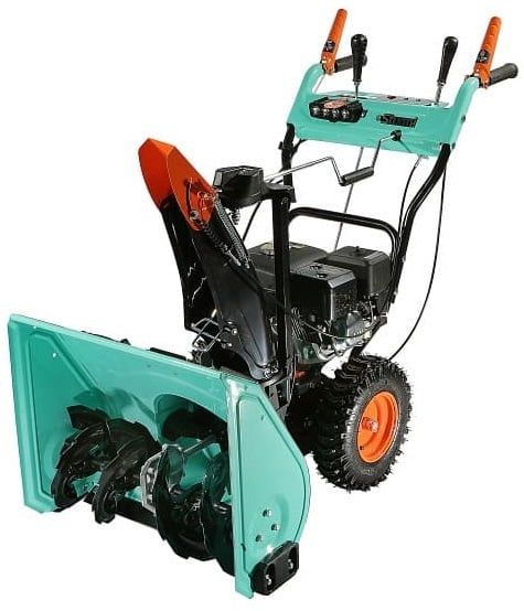 - Агрессивные шнеки диаметром 250 мм легко справляются со слежавшимся снегом и настом.