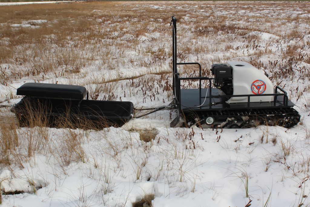 1. Увеличенная площадь соприкосновения гусеницы с поверхностью. Проходимость и тяга выше в среднем на 20-32%. 2. Идеальная продольная и поперечная центровка, максимально низкий центр тяжести и погрузочная высота (675-745 мм) в сочетании с широким рулем - делают управление на снегу и болоте максимально легким. 3. Уникальная возможность эксплуатировать гусеницу без натяжения уменьшает нагрузку на ДВС и подшипники, повышает скорость, экономию топлива, увеличивает в разы ресурс накладки склиза. 4. Первая система самоочистки гусеницы в сочетании с открытой толстостенной стальной рамой, максимально чистой внутри неприхотливой независимой подвеской (нет ненадежных витых пружин, как у других) - позволяет не возить внутри гусеницы до 100 кг лишнего снега. 5. Легкое натяжение цепи быстросъемным силовым модулем. 6. Морозо и вибростойкий не лопающийся капот (мы против хрупкого стеклопластика или АБС-пластика) с чехлом карбюратора и пластинами утепления - максимально защищает ДВС от обледенения. Исключена возможность попадания снега и воды (с приводной цепи) на ремень вариатора - все герметично.