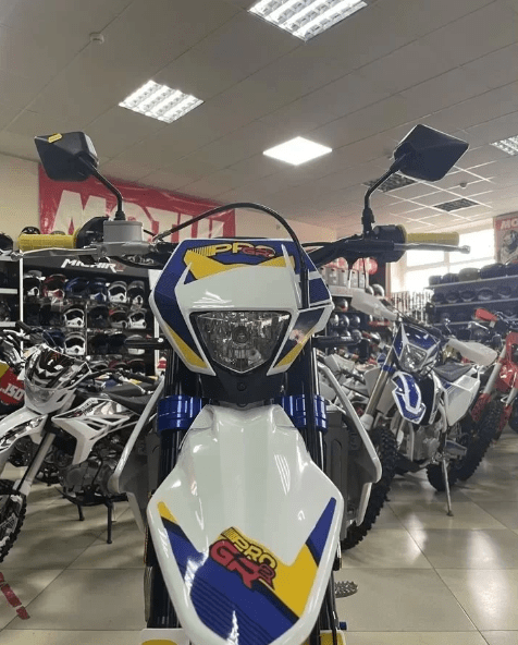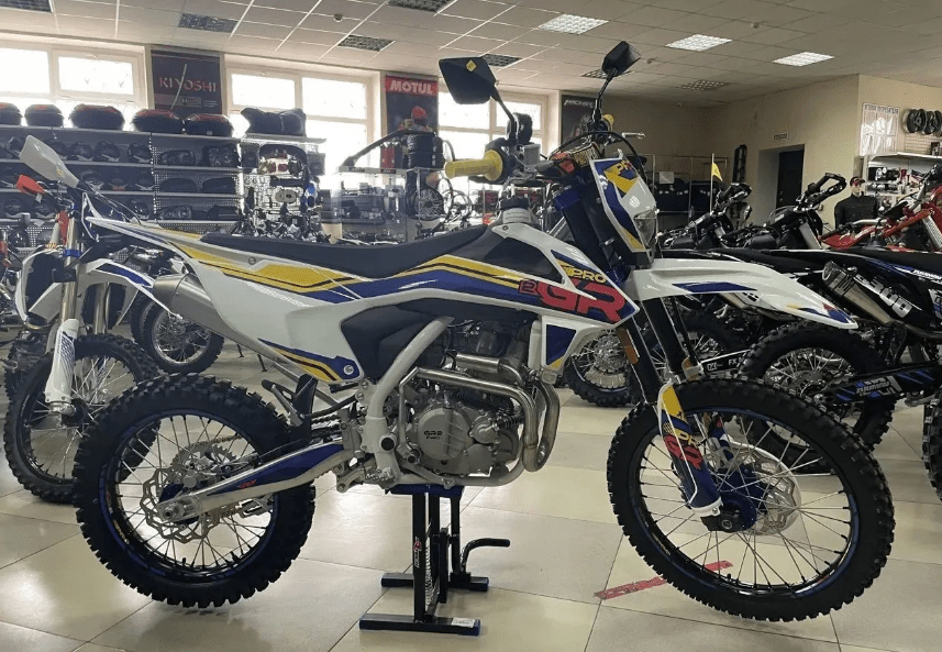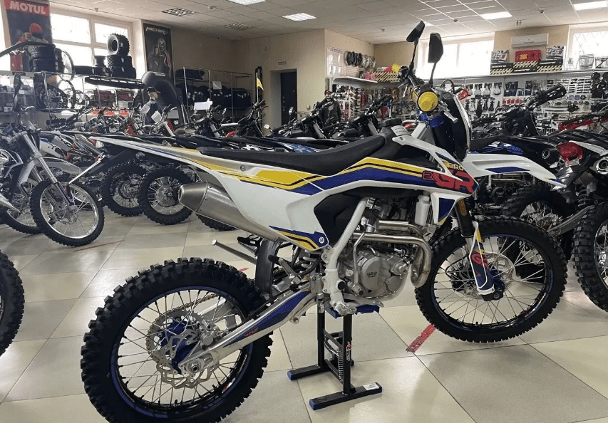 Продуманный дизайн GR2 300 PRO делает этот эндуро-байк очень стильным – цветные анодированные траверсы, колеса с цветными ступицами дополнены графическими акцентами, грипсы руля в тон, дополнительные наклейки на маятнике, лапка рычага переключения передач – всё решено в едином стиле и выглядит очень привлекательно. Этот мотоцикл займет достойное место в гараже и может быть использован для фрирайда в выходной день, эндуро-рейдов в компании друзей, поездок по бездорожью и пересеченной местности. Габариты коробки, в которой поставляется мотоцикл, составляют 1510 x 460 x 840 миллиметров.