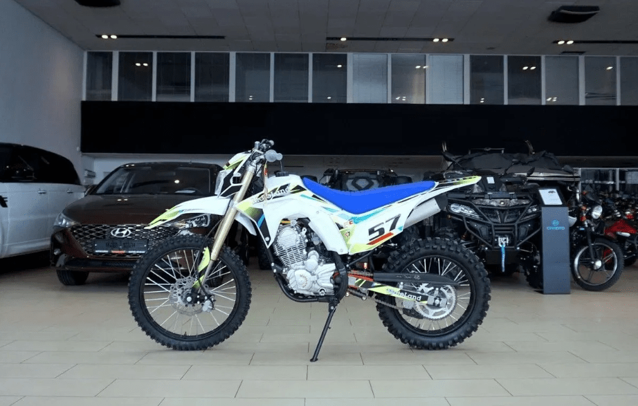 Мотоцикл Motoland Кросс FC250 (2020 г.) - современный транспорт для езды по городским дорогам и пересеченной местности. Отлично подходит для соревнований по мотокроссу. Двигатель мощностью 14 л. с. позволяет набирать разгон до 120 км/ч. Имеет хорошую проходимость, прекрасно ведёт себя на песке и грунте, подходит для асфальтовых дорог. Стальная рама выдерживает вес пользователя до 150кг. Оснащается светодиодными поворотниками и стоп сигналами, блокировкой замка зажигания. Скромный расход топлива, который почти не зависит от того, с какой скоростью едет мотоцикл и на каких оборотах работает двигатель.