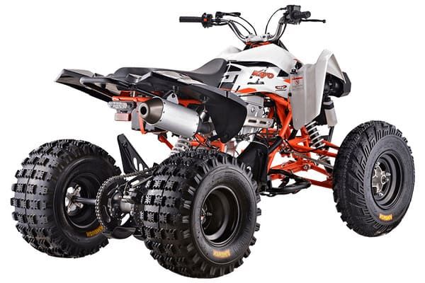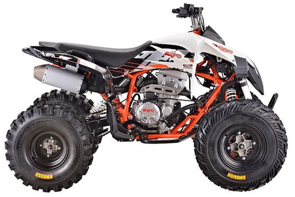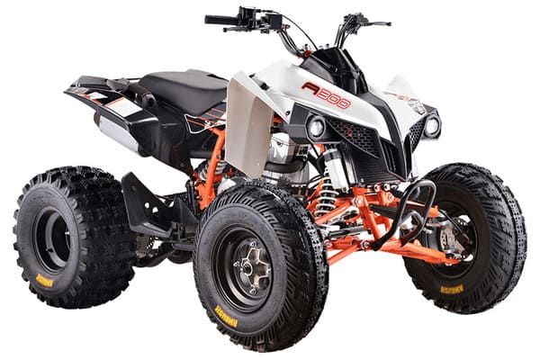 KAYO A300 - топовый представитель линейки квадроциклов китайского мотобренда. Этот спортивный аппарат отличают высокие показатели мощности и производительности, а также оптимальный баланс в подборе комплектующих высокого качества. Обновленная в 2022 году модель рассчитана на опытных ATV-райдеров и позволит получить максимум удовольствия от вождения в спортивном стиле. В мощной раме спортивного снаряда установлен одноцилиндровый 4-тактный двигатель LX178MN рабочим объемом 292см3 с системой жидкостного охлаждения, четырьмя клапанами в системе газораспределения и механической трансмиссией (реверс - нейтраль - далее передачи с первой по пятую). Оснащение квадроцикла новой инжекторной системой подготовки топлива позволило обеспечить быстрый отклик на рычаг акселератора, а также показатели максимальной мощности в 29 лошадиных сил. Качественная подвеска - одна из ключевых составляющих оснащения спортивного аппарата. У KAYO A300 спереди задействована развитая многорычажная подвеска, удлиненные рычаги которой позволили изменить углы наклона амортизаторов и увеличить ширину колеи для лучшей устойчивости и управляемости. Для эффективного использования техники в различных условиях рабочие параметры амортизаторов квадроцикла можно настраивать под конкретные задачи. Для укрощения мощности и эффективного торможения используется производительная и надежная дисковая гидравлическая тормозная система. Установка передних тормозных роторов внутри колесных дисков позволило сделать эту часть тормозной системы более защищенной в условиях эксплуатации на бездорожье. Дополнительный комфорт обеспечивает линзованная оптика передних фар с галогеновыми лампами и задний светодиодный стоп-сигнал. Квадроцикл KAYO A300 как нельзя лучше подойдет для тех фанатов скорости и бездорожья, кто хочет получить незабываемые впечатления и настоящее море драйва от поездки на ATV-технике.