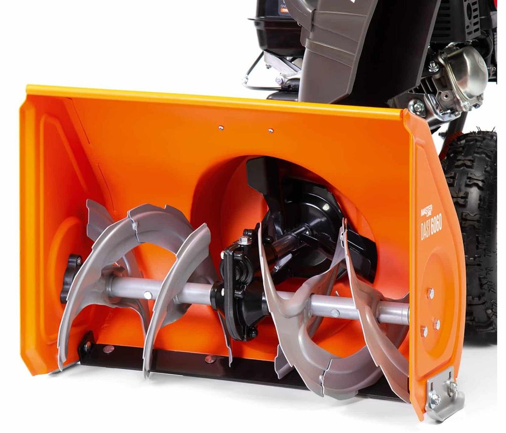 • Стальной шнек. Снегоуборочная машина оснащена специальным шнеком с зубчиками, который позволяет справиться даже с залежавшимся снегом на большой и маленькой территории. Обладает многоступенчатой системой очистки.