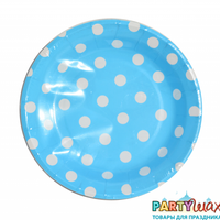 Тарелка круглая голубая, белый горох для проведения дня рождения. Тарелки входят в состав коллекции ГОРОХОВАЯ ВЕЧЕРИНКА товаров для проведения праздников. Упаковка - 12 шт. -