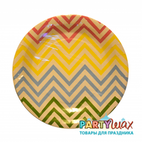 Тарелка круглая, Разноцветная волна для проведения дня рождения. Тарелки входят в состав коллекции ПОЛОСАТАЯ ВЕЧЕРИНКА товаров для проведения праздников. Упаковка - 12 шт. -
