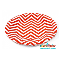 Тарелка круглая, красная волна для проведения дня рождения. Тарелки входят в состав коллекции ПОЛОСАТАЯ ВЕЧЕРИНКА товаров для проведения праздников. Упаковка - 12 шт. -
