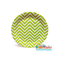 Тарелка круглая, зеленая волна для проведения дня рождения. Тарелки входят в состав коллекции ПОЛОСАТАЯ ВЕЧЕРИНКА товаров для проведения праздников. Упаковка - 12 шт. -