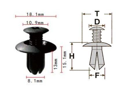 Клипса T-0018 автомобильная с резьбовым штырьком, 25шт.