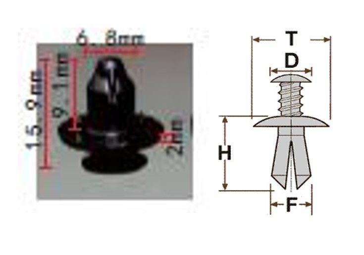 Клипса T-0009 автомобильная с резьбовым штырьком, 25шт.