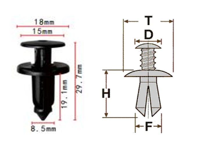 Клипса T-0018 автомобильная с резьбовым штырьком, 25шт.