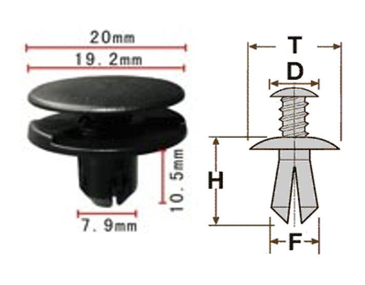Клипса T-0021 автомобильная с резьбовым штырьком, 25шт.
