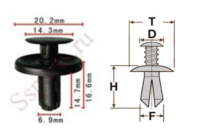 Клипса T-0001 (KJ-2294) автомобильная с резьбовым штырьком, 25шт.