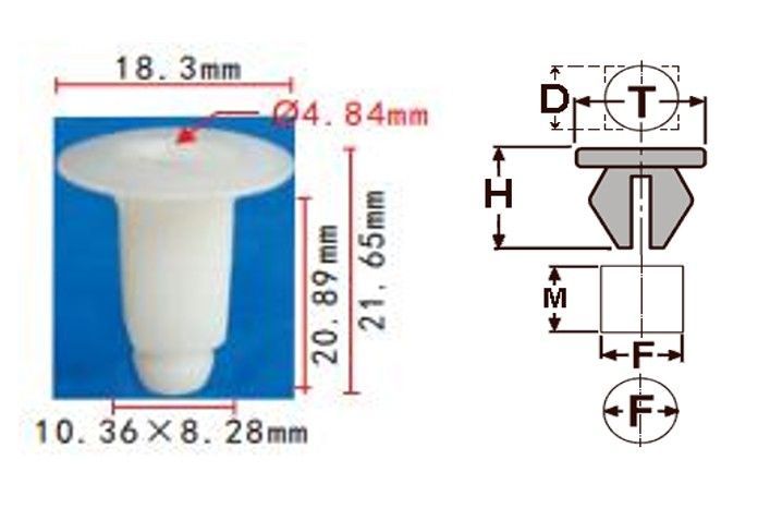 Клипса T-0021 автомобильная с резьбовым штырьком, 25шт.