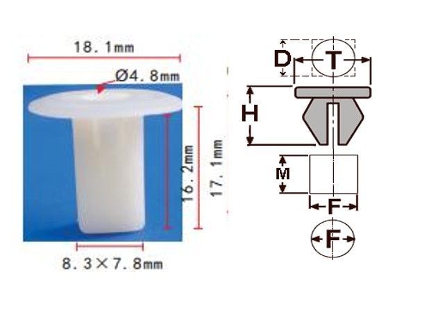 Клипса T-0018 автомобильная с резьбовым штырьком, 25шт.