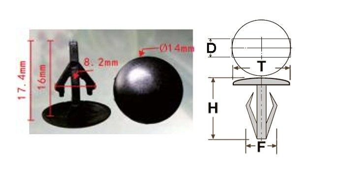 Клипса T-0001 (KJ-2294) автомобильная с резьбовым штырьком, 25шт.
