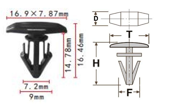 Клипса T-3012 (KJ-498) автомобильная нажимная, 25шт.