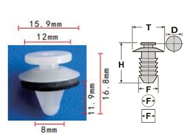 Клипса T-0018 автомобильная с резьбовым штырьком, 25шт.