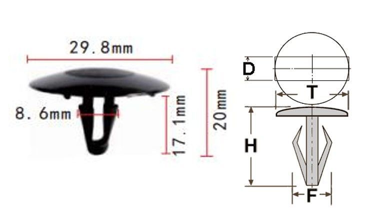 Клипса T-3018 (KJ-370,KJ-369) автомобильная нажимная, 25шт.