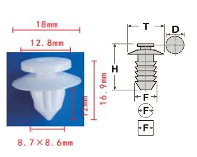 Клипса T-0018 автомобильная с резьбовым штырьком, 25шт.
