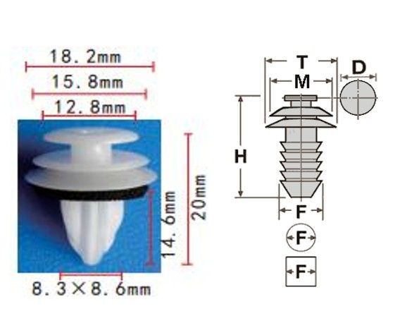 Клипса T-0018 автомобильная с резьбовым штырьком, 25шт.