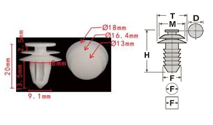 Клипса T-0018 автомобильная с резьбовым штырьком, 25шт.