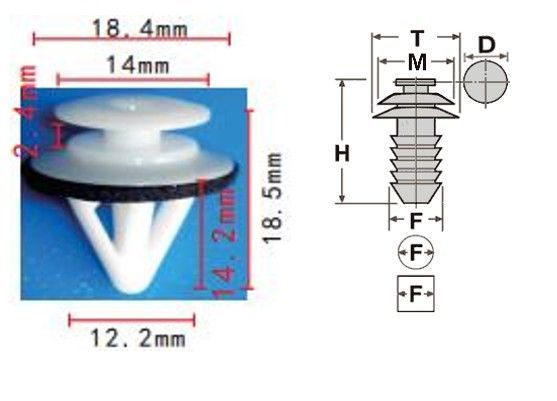 Клипса T-0018 автомобильная с резьбовым штырьком, 25шт.