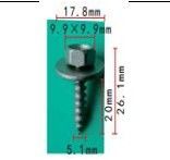 Клипса T-0021 автомобильная с резьбовым штырьком, 25шт.