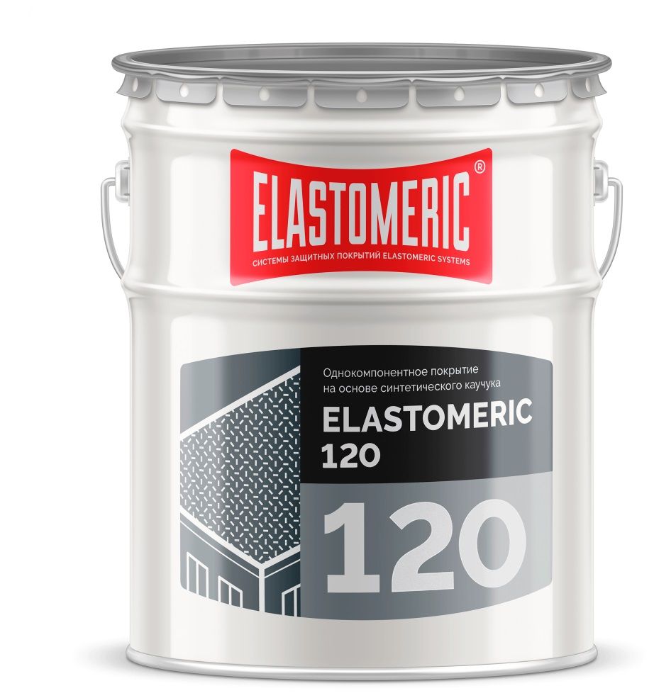 ELASTOMERIC - 120 – наносимое в жидком виде финишное гидроизоляционное однокомпонентное покрытие на основе блок сополимера синтетического каучука нового поколения для гидроизоляции строительных конструкций и устройства бесшовных кровельных покрытий. Материал специально разработан для более долговременной защиты водостойких покрытий от воздействия ультрафиолета, соляного тумана, кислот и щелочей, содержащихся в атмосфере. Продукт имеет более высокую устойчивость к внешним факторам, чем аналогичные материалы. После высыхания образует очень прочную, водонепроницаемую, высокоэластичную мембрану. Покрытие обладает необычайной стойкостью к ультрафиолету, раствором кислот и щелочей, находящимся в атмосфере и абразивным нагрузкам. Применяется для ремонта и гидроизоляции по старым и новым кровлям, включая бетонные, металлические и битумные, а также ПВХ, ЭПДМ и ТПО мембраны и подходит для плоских, скатных и купольных конструкций.