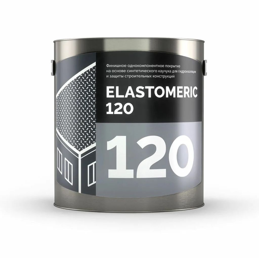 ELASTOMERIC - 120 – наносимое в жидком виде финишное гидроизоляционное однокомпонентное покрытие на основе блок сополимера синтетического каучука нового поколения для гидроизоляции строительных конструкций и устройства бесшовных кровельных покрытий. Материал специально разработан для более долговременной защиты водостойких покрытий от воздействия ультрафиолета, соляного тумана, кислот и щелочей, содержащихся в атмосфере. Продукт имеет более высокую устойчивость к внешним факторам, чем аналогичные материалы. После высыхания образует очень прочную, водонепроницаемую, высокоэластичную мембрану. Покрытие обладает необычайной стойкостью к ультрафиолету, раствором кислот и щелочей, находящимся в атмосфере и абразивным нагрузкам. Применяется для ремонта и гидроизоляции по старым и новым кровлям, включая бетонные, металлические и битумные, а также ПВХ, ЭПДМ и ТПО мембраны и подходит для плоских, скатных и купольных конструкций.