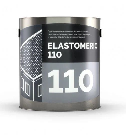 ELASTOMERIC - 110 – наносимое в жидком виде финишное гидроизоляционное однокомпонентное покрытие на основе блок сополимера синтетического каучука нового поколения для гидроизоляции строительных конструкций и устройства бесшовных кровельных покрытий. Материал специально разработан для более долговременной защиты водостойких покрытий от воздействия ультрафиолета, соляного тумана, кислот и щелочей, содержащихся в атмосфере. Продукт имеет более высокую устойчивость к внешним факторам, чем аналогичные материалы. После высыхания образует очень прочную, водонепроницаемую, высокоэластичную мембрану. Покрытие обладает необычайной стойкостью к ультрафиолету, раствором кислот и щелочей, находящимся в атмосфере и абразивным нагрузкам. Применяется для ремонта и гидроизоляции по старым и новым кровлям, включая бетонные, металлические и битумные, а также ПВХ, ЭПДМ и ТПО мембраны и подходит для плоских, скатных и купольных конструкций.