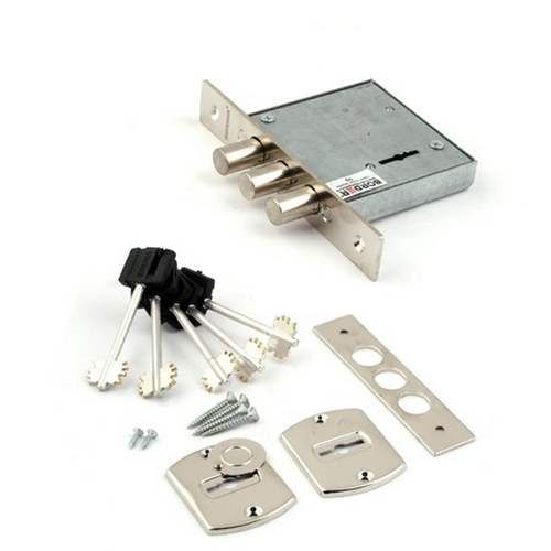 Производитель`ПросамУдаление ключевого отверстия (Backset)`48.5 ммТип механизма секретности`Сувальдный с двойной бородкойДиаметр ригеля`11.7 ммКоличество ригелей`3 штВылет ригелей`21.5 ммМежосевое расстояние`55 ммЦвет ручки`Медный антикКоличество ключей`3 штТип защелки`УниверсальнаяЗащелка`КлассическаяТип ригелей`Цилиндрические