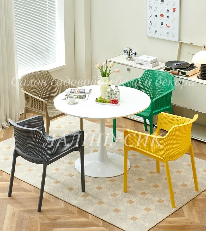 Кресло отлично подойдет для украшения вашей кухни или террасы, обеспечивая комфорт и удобство во время приема пищи или отдыха. Его эргономичная форма и устойчивость к различным погодным условиям делают его идеальным выбором для использования как внутри помещения, так и на улице.