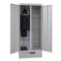 Сушильный шкаф Ветерок 1940 очень вместителен (до 10 комплектов детской верхней одежды) и предназначен для сушки совершенно мокрой одежды, обуви, шарфов, перчаток. Покупают данный шкаф для эксплуатации в детских садах, школьных и дошкольных учреждениях, детских спортивных секциях и школах. Качественную сушку совершенно мокрой верхней одежды и обуви всего за 4 часа обеспечивает циркуляция подогретого воздуха внутри шкафа. Простоту использования сушильного шкафа обеспечивают два регулятора на корпусе (таймер и температура, максимум 70°С). Двери шкафа надежно закрываются на ключевой замок. Шкаф безопасен в эксплуатации, даже при сушке совершенно мокрых вещей, так как нагревательный элемент находится сверху шкафа и на него не может попасть влага и капли с мокрых вещей, а УЗО расположено вне корпуса шкафа. Шкаф подключается к общей системе вентиляции (фланец 125 мм). Шкаф продается в разобранном виде и его необходимо дополнительно комплектовать полками или комплектом наполнения.