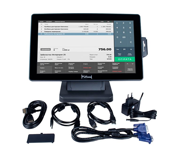 Сенсорный монитор Poscenter EVA-156 PRO обладает абсолютно плоским без рамочным экраном и устойчивой алюминиевой подставкой. У монитора многоточечная емкостная сенсорная панель и 15,6” LCD экран с разрешением 1920х1080, цветностью 16.7 млн. цветов. У EVA-156 PRO большой угол обзора как по горизонтали, так и по вертикали. Широкоформатный монитор прекрасно подходит для использования в сфере обслуживания. Он подойдёт: для кухни в качестве станции повара, для использования в пунктах выдачи, для розничных магазинов как монитор кассира. Монитор оснащен устойчивой алюминиевой эргономичной подставкой. Она дает возможность разместить его даже на компактных поверхностях или барных стойках. Благодаря низкому центру тяжести и конструкции подставки достигается отличная устойчивость монитора. При необходимости можно легко и быстро отсоединить монитор от подставки и разместить на любой вертикальной поверхности с помощью VESA крепления 75х75. Такая возможность поможет сэкономить рабочее пространство и оптимизировать его. Кабели, идущие от монитора, можно убрать внутрь стенда, где предусмотрен для этого кабель- канал. Сенсорный монитор POScenter EVA-156 PRO оснащен не только портом VGA, но и HDMI.