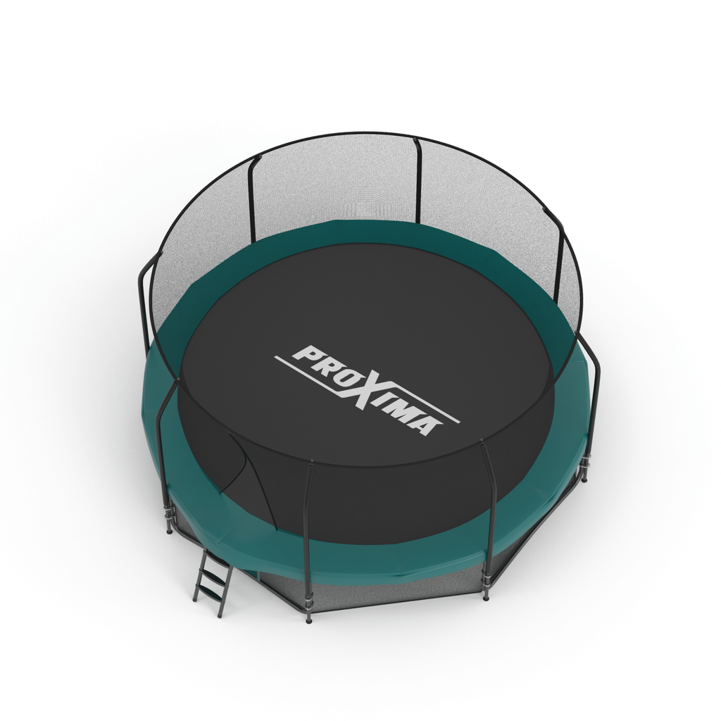 - Батут Proxima Premium оборудован удобной лестницей из двух ступеней, которая позволит с легкостью на него забраться даже маленьким прыгунам.
